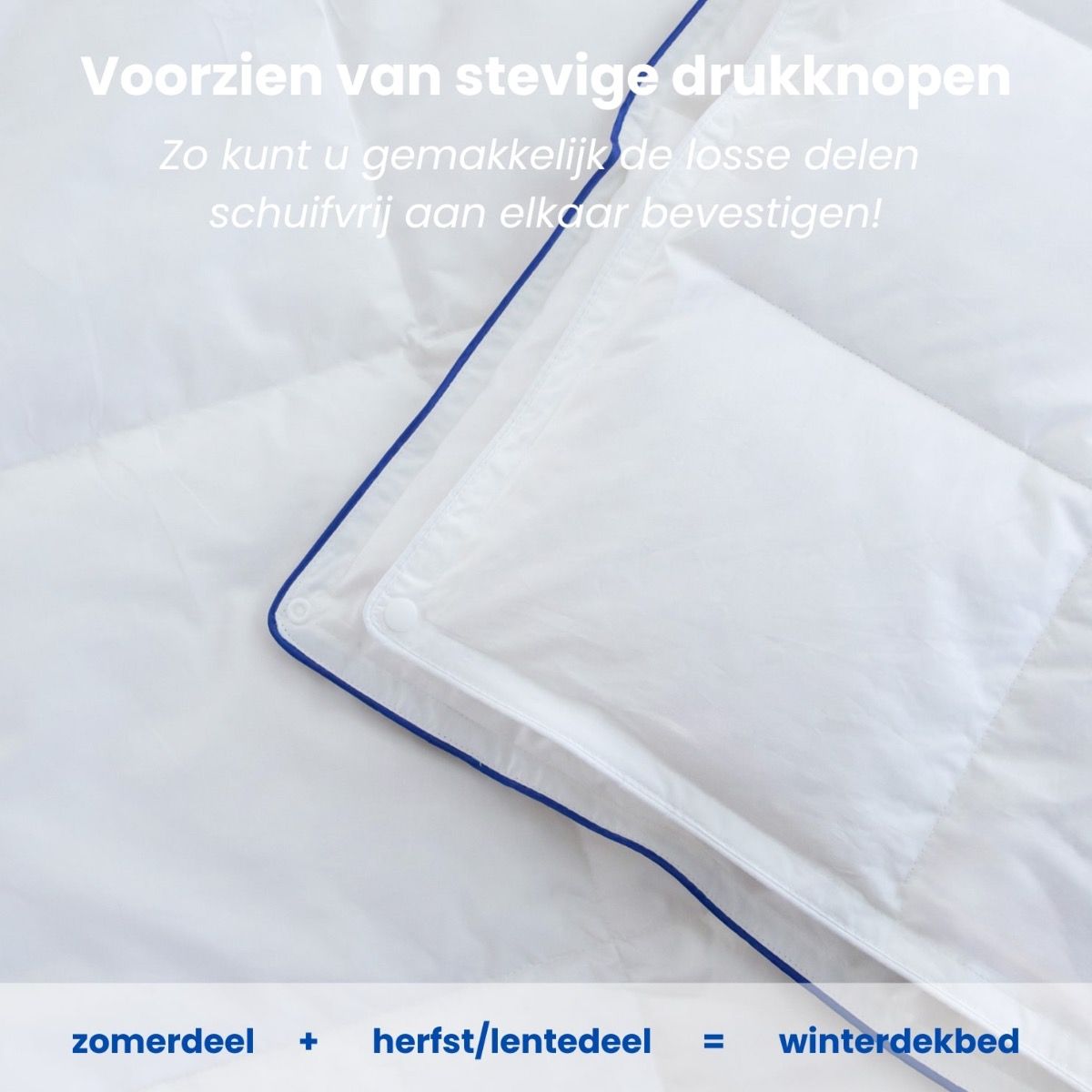 Volledig schuifvrij doorgestikt in unieke blok-confectie, schuifvrij met oog voor een optimaal egale warmtespreiding.