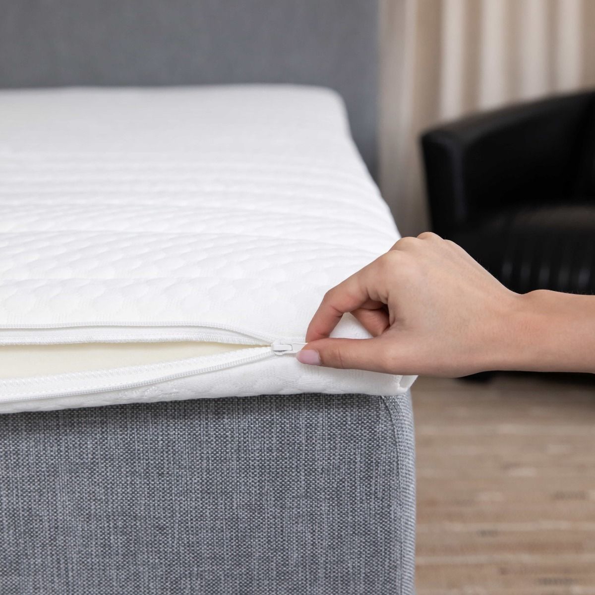 - De tijkstof is voorzien van 3 zijdige rits voor eenvoudige reiniging, wasbaar op 30oC
