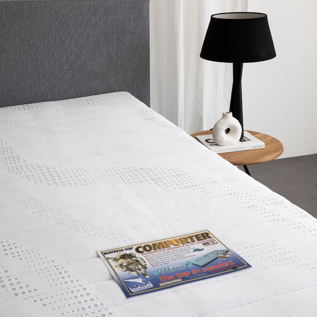 Deze Nasa MatrasTopper maakt slapen top! U voelt geen enkele druk; het lichaam wordt weldadig gedragen. Werkelijk een wereld uitvinding van NASA. Comforter is een fantastisch drukverlagend Visco-elastische oplegmatras. De open celstructuur zorgt voor ventilatie en voorkomt vochtophoping.