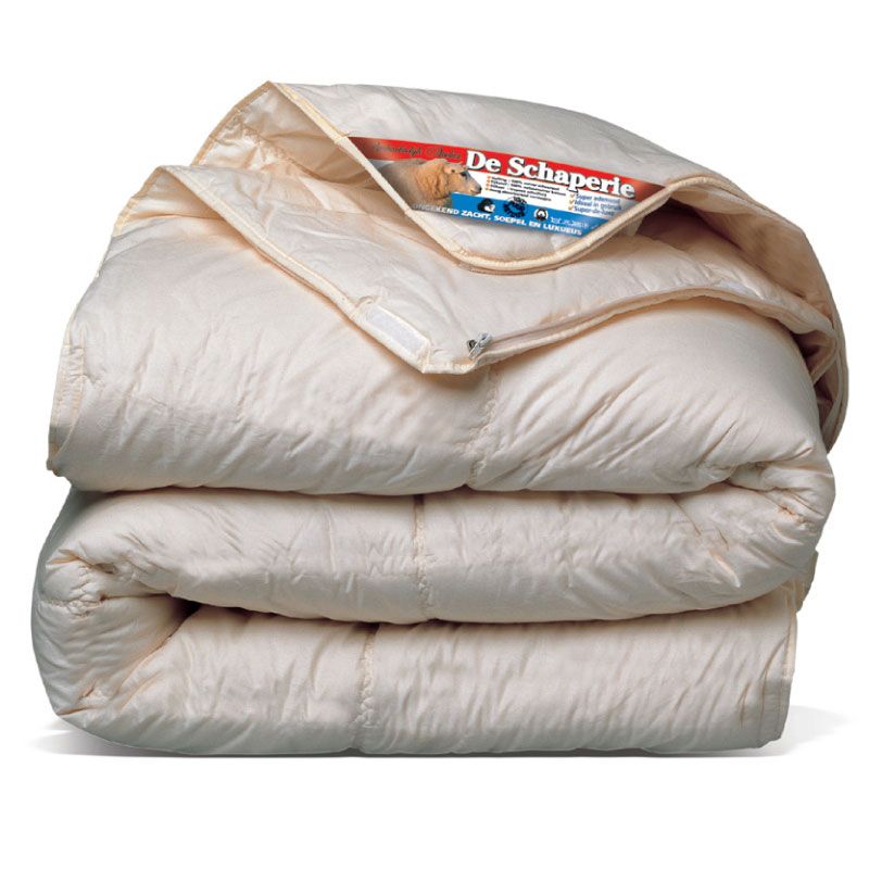 De Schaperie is een 100% zuiver scheerwollen 4-seizoenen dekbed. Puur natuurlijke wol verzorgt 'n perfect gespreide, behaaglijke warmte. Samen met het enorme absorptie en ventilatie vermogen garandeert dit een uiterst gezond en hygiënisch slaapklimaat. Bovendien bevat correct verwerkte wol 'n flinke dosis lanoline(wolvet), wat heilzaam werkt bij gevoelige en pijnlijke spieren en botten.