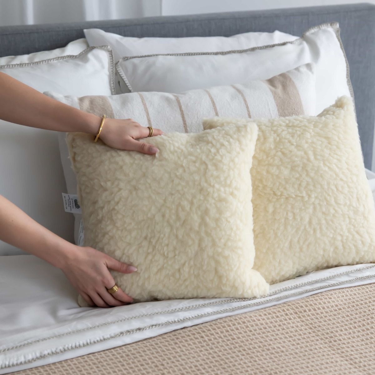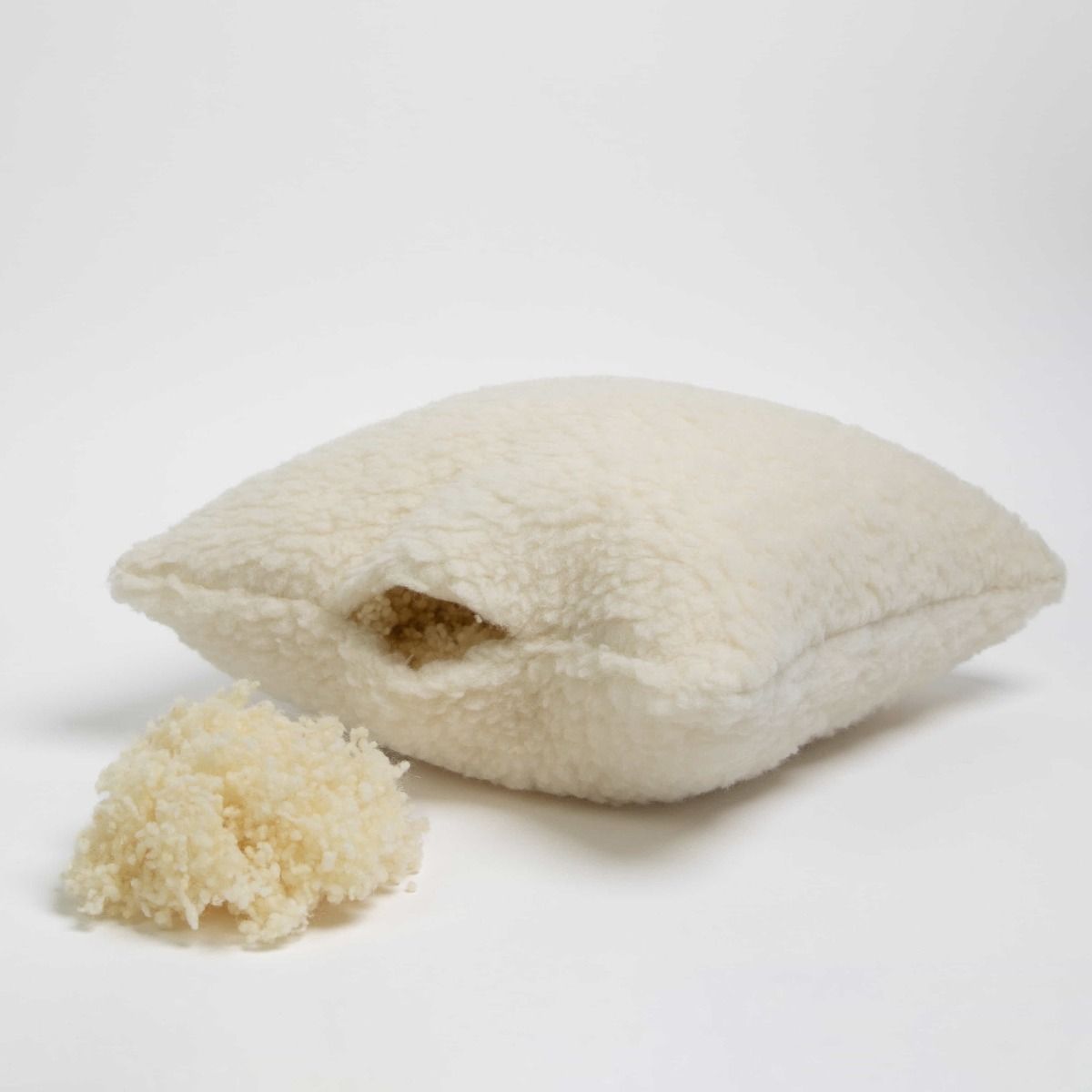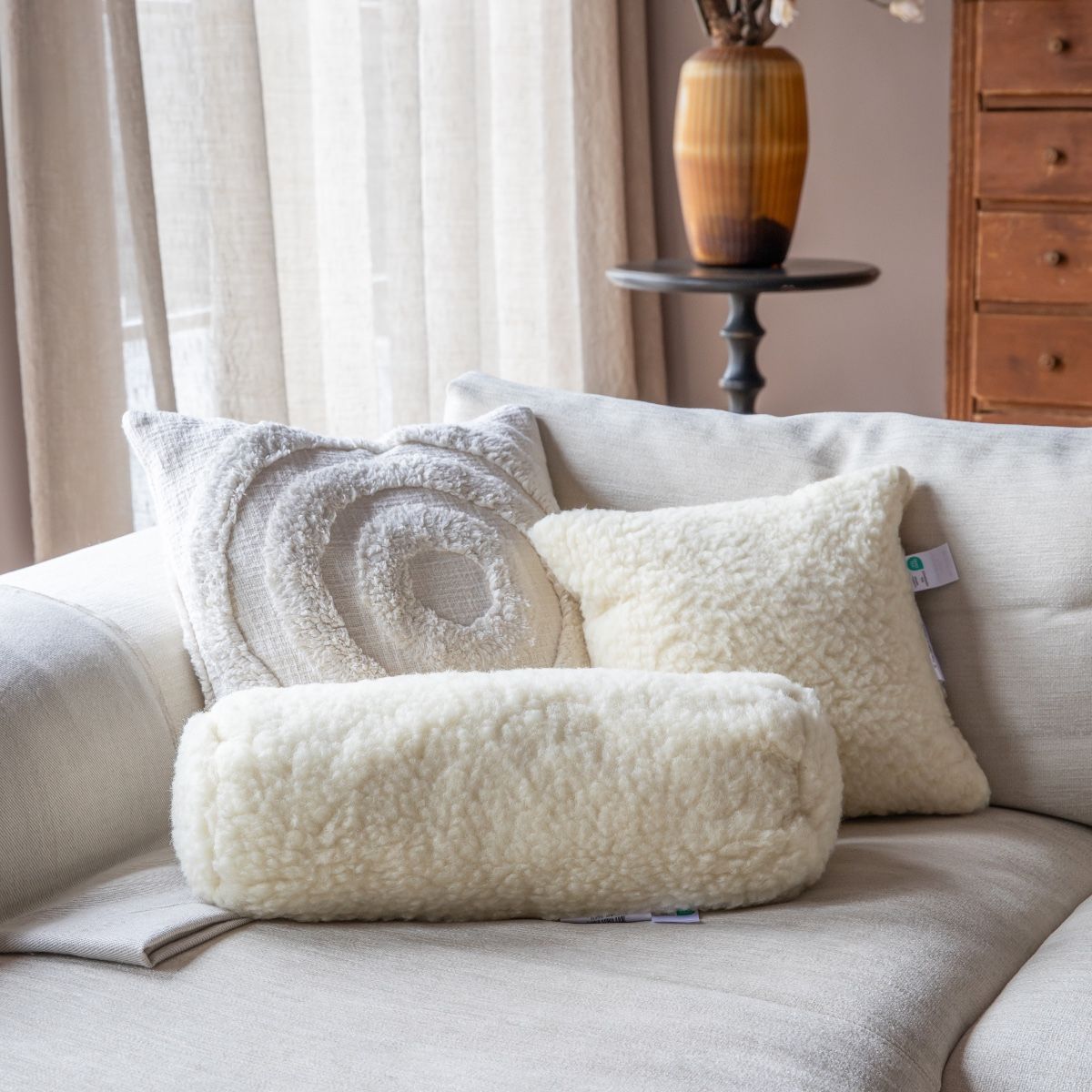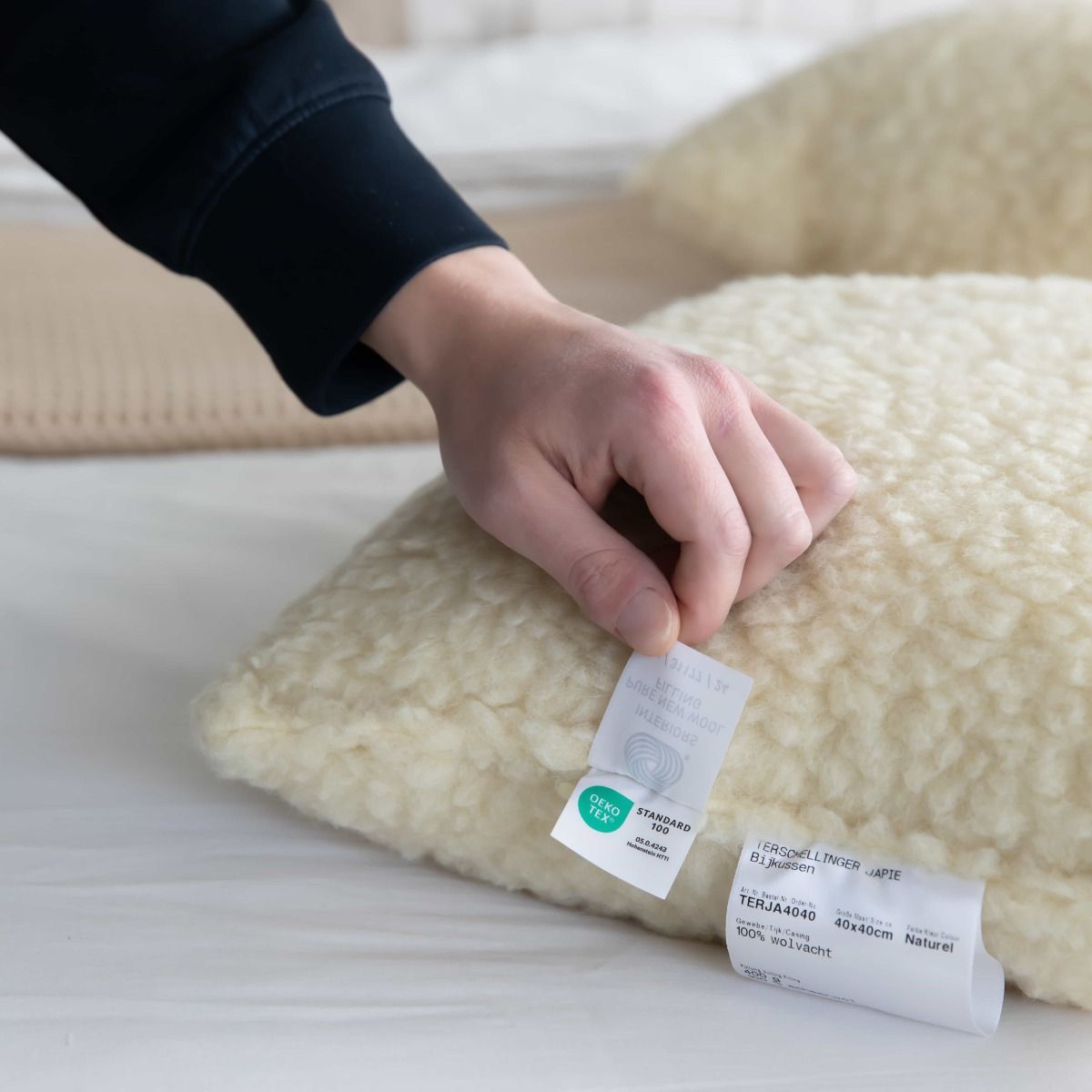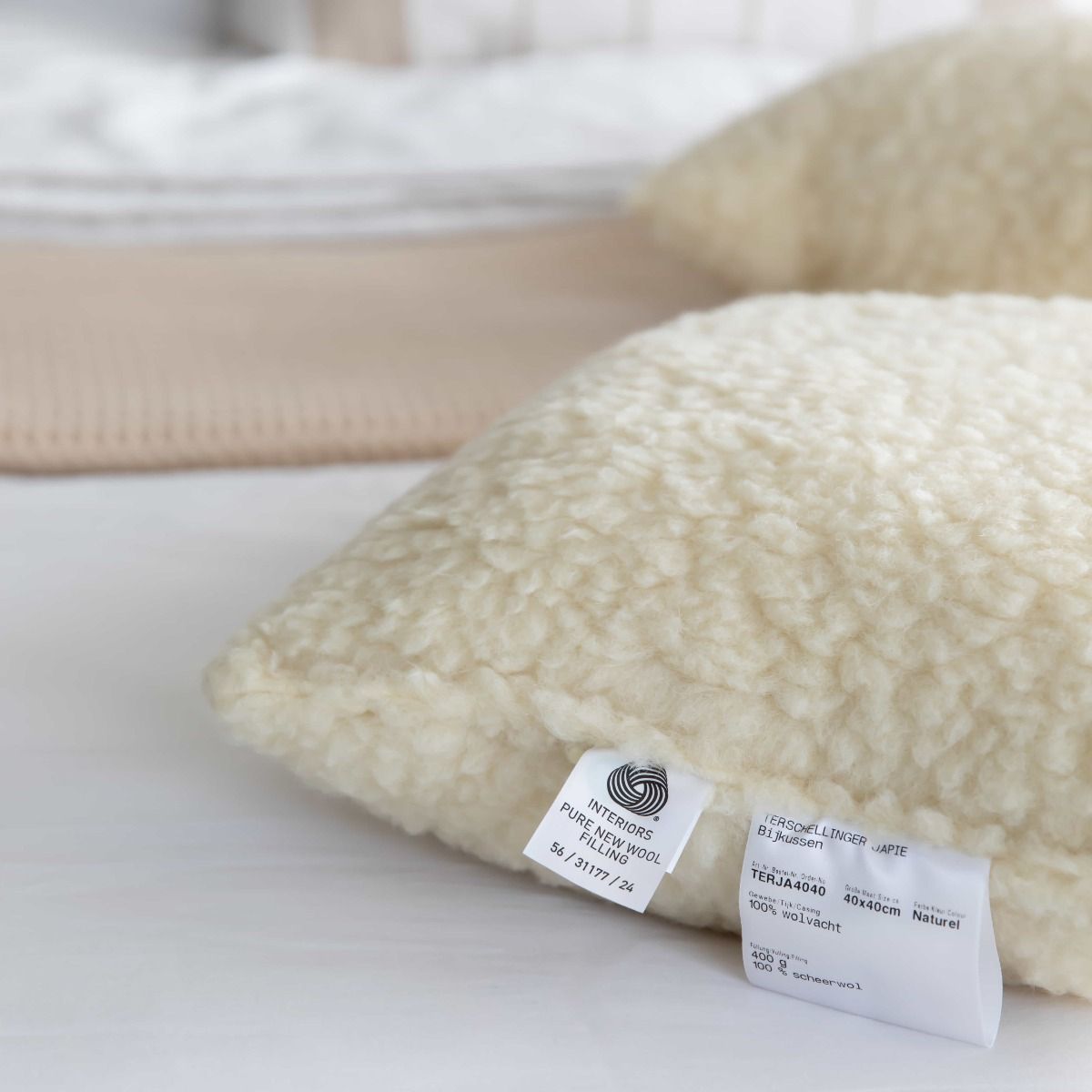 Rijkelijk gevuld met ruim 400gram zuivere scheerwollen wolbolletjes, voor een puur natuurlijk ondersteunend comfort voor bij u op de bank of lekker in bed.