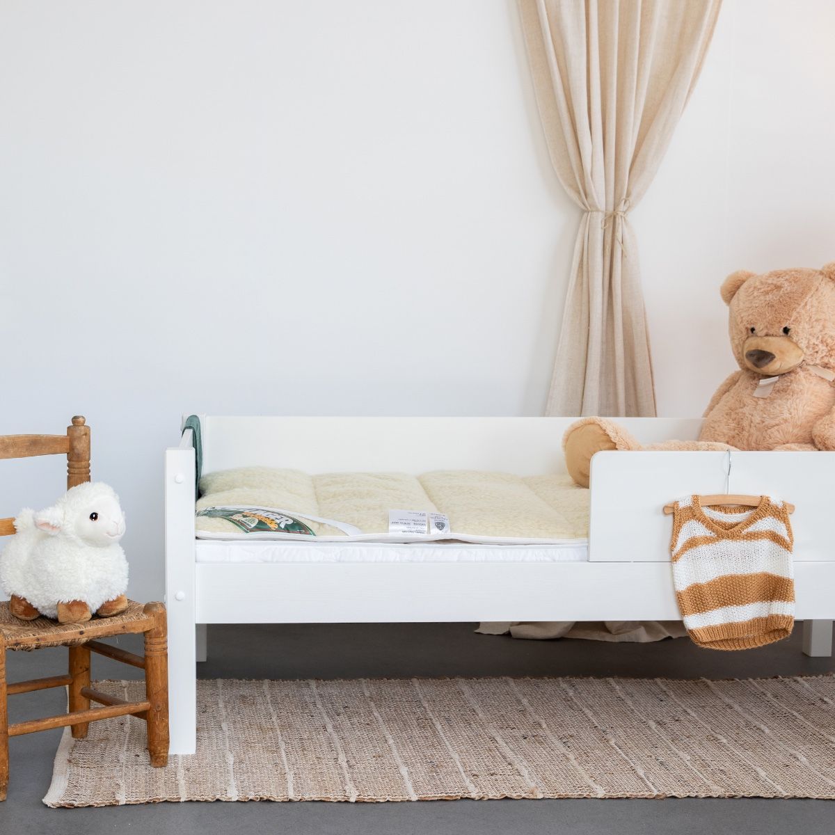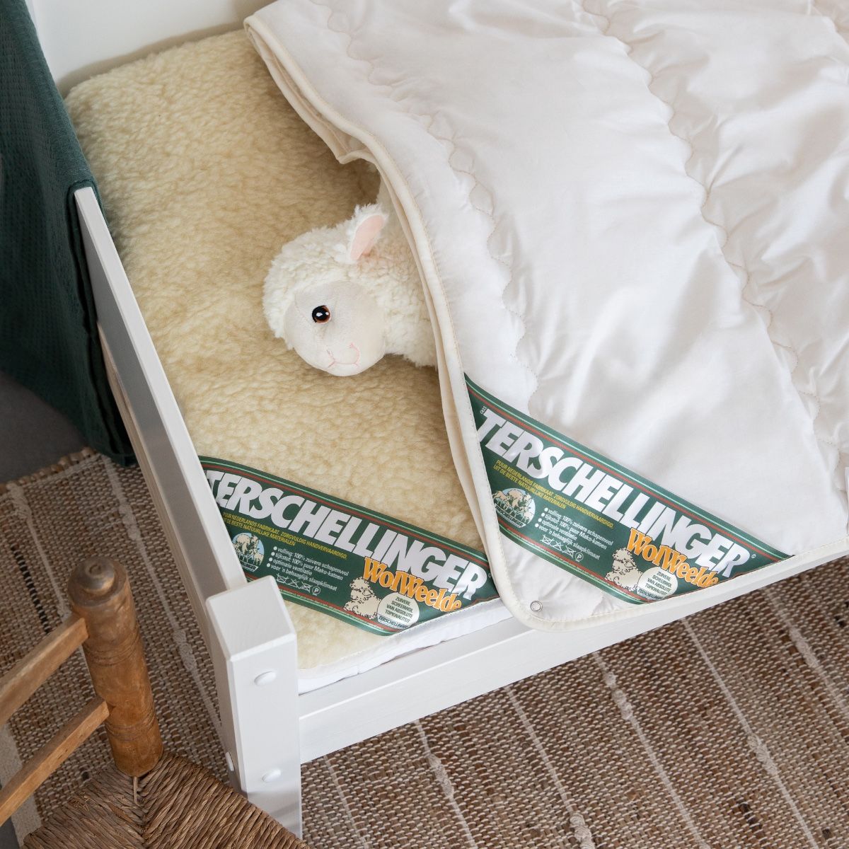 - Bovenzijde: 360gram/m² 100% zuiver schapenwol
