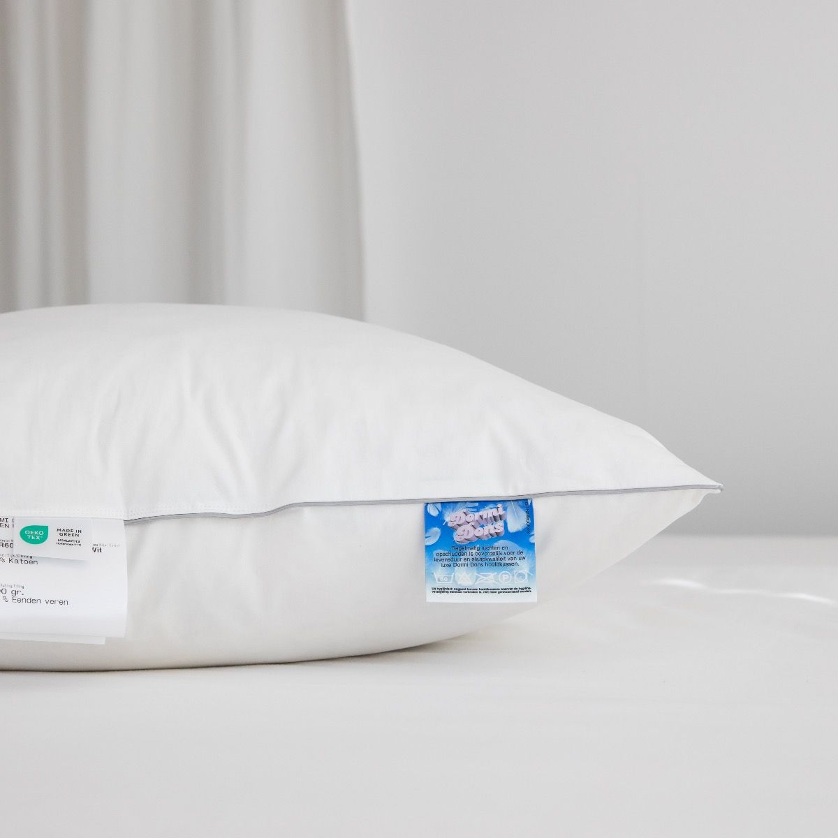 Dit originele DormiDons© hoofdkussen is voorzien van een hygiëne-verzegeling. Zo bent u altijd gegarandeerd van een fabrieksnieuw en onbeslapen hygiënisch product.