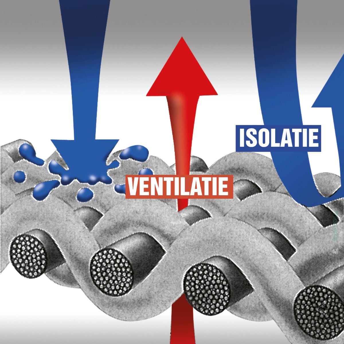 De van oorsprong ronde vezeldraad valt na het zgn. “Splitting-procedée” uiteen tot een stervorminge kern waardoor het oppervlak extreem vergroot werd. Belangrijk, want hoe groter het oppervlak, hoe hoger de vochtopname. De door Splitting gecreëerde tussenliggende sleufruimtes absorberen door de capitulaire werkingenorme hoeveelheden transpiratievocht razendsnel tijdens de nachtrust. Het kent dus uitstekende vochtafvoerende “Wicking”-eigenschappen.