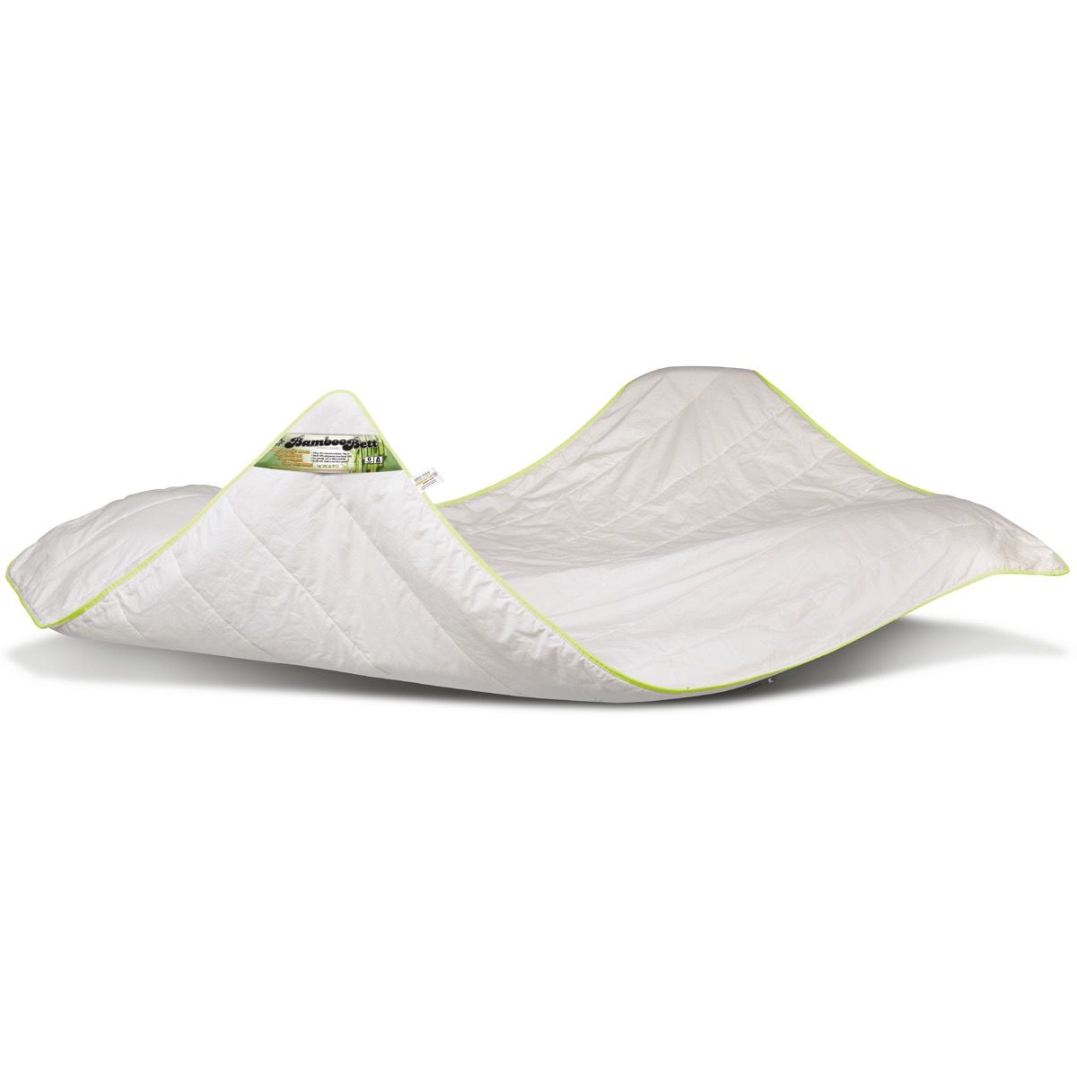 Het unieke BambooBett© Zomerdekbed is ideaal voor de warme zomernachten. De 100% puur natuurlijke bamboo-vezel is heerlijk koel en fris, en kent optimale vocht-absorberende en ademende eigenschappen. Het BambooBett© van Duitse tópkwaliteit is zeer licht in gewicht, streelzacht en verkoelend. De zeer edele en luxueuze tijkstof is van fijngeweven 100% natuurlijke katoen (originele satijnbinding), schuifvrij doorstikt in Trapeze-step. Bamboo is van nature anti-bacterieel, huidvriendelijk en machinewasbaar 40oC. Kortom; BambooBett© is ideaal voor onze warme zomers. En niet onbelangrijk; Bamboo wordt zeer milieu-vriendelijk geproduceerd. Dus pure weelde, en nog verantwoord ook. Bovendien nu ongekend voordelig. Profiteer ervan.